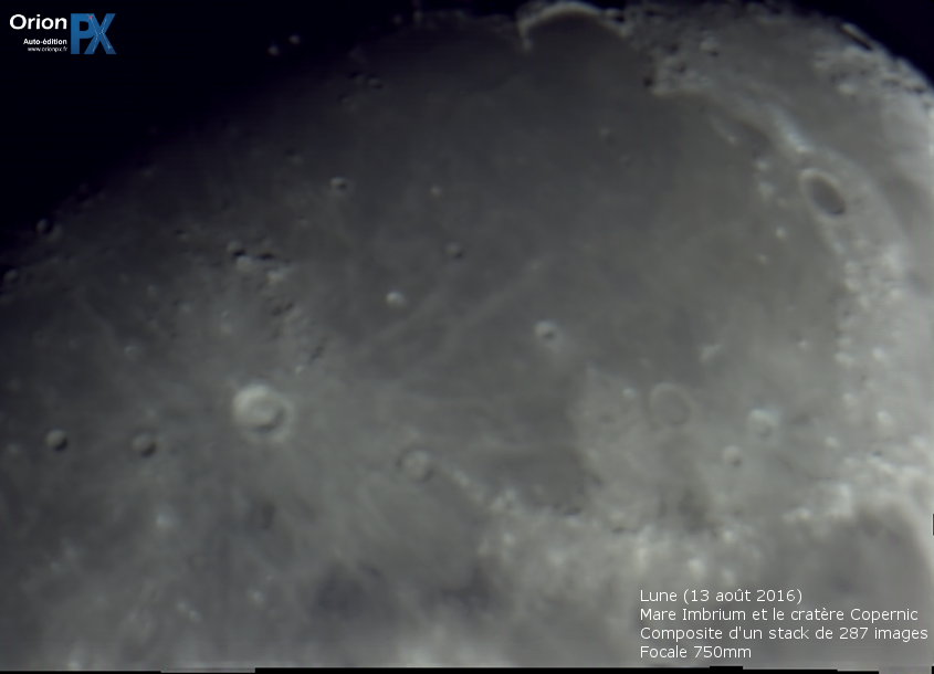 Mer des pluies avec le cratère Copernic dans le quart inférieur gauche.